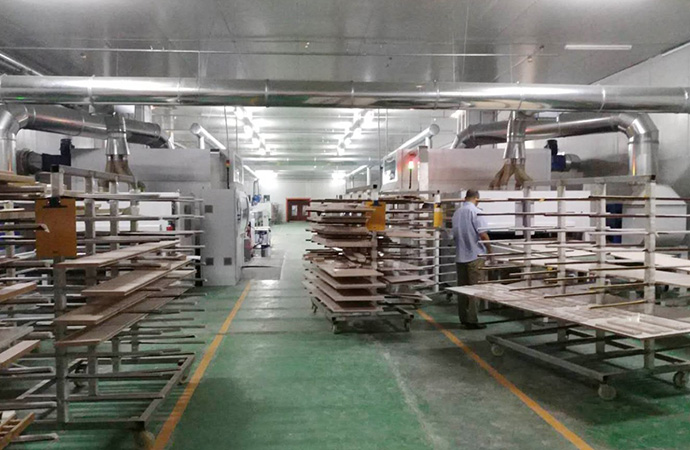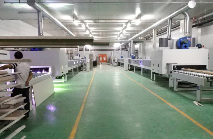 工藝要求 無溶劑UV底漆、水性UV底漆 產(chǎn)品種類 全屋定制、櫥柜、衣柜、木門、線條 產(chǎn)線數(shù)量 4條/廠 設(shè)備特色 無溶劑UV底、水性UV底漆,達(dá)到PU質(zhì)感的98%以上。 生產(chǎn)產(chǎn)能 UV底漆噴涂線(兩條):3600m2/8h (生產(chǎn)員3人/線)
