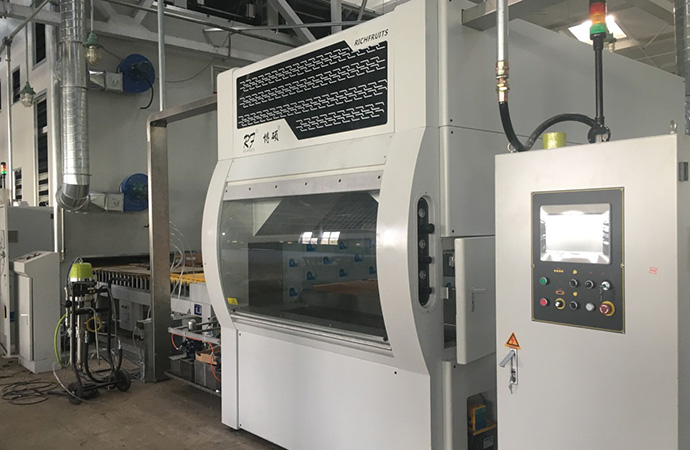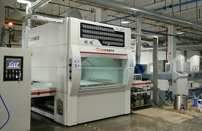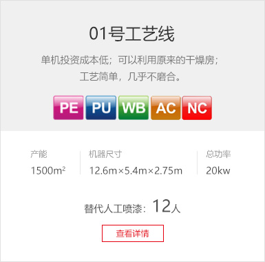工藝要求 無(wú)溶劑UV底漆、水性面漆 產(chǎn)品種類(lèi) 全屋定制、櫥柜、木門(mén)、線(xiàn)條 產(chǎn)線(xiàn)數(shù)量 2條 設(shè)備特色 面容積清洗皮帶系統(tǒng),年節(jié)約清洗劑30萬(wàn)。 生產(chǎn)產(chǎn)能 UV底漆噴涂線(xiàn):1800m2/8h (生產(chǎn)員3人/線(xiàn))