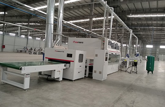 工藝要求 UV底漆、水性面漆 產(chǎn)品種類 實木復(fù)合門、門套、門板 產(chǎn)線數(shù)量 6條 設(shè)備特色 自動噴漆、砂光、噴色、修色和面漆,不下線連續(xù)生產(chǎn)。 生產(chǎn)產(chǎn)能 800套門板/天 廢氣處理 干式過漉+催化燃燒處理系統(tǒng) -