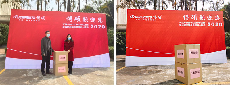 針對(duì)此次疫情所需要防疫物資,工作組一行還為博碩帶來了兩箱口罩,讓我們感受到了暖暖的春意。