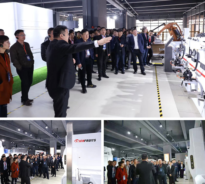 博碩董事長謝君女士、廣東省定制家居協(xié)會會長索菲亞副總裁張挺,全國工商聯(lián)家具裝飾商會執(zhí)行會長張傳喜、土耳其木工設(shè)備優(yōu)秀經(jīng)銷商Cem、上海冠盛木工機械有限公司董事長陳培賢、越南理研聯(lián)營RIKEN總經(jīng)理丁弈瑋、馬來西亞良勝木家具機械有限公司董事長梁韶文、印尼BSA公司董事長Bob一共8位產(chǎn)業(yè)鏈大咖共同開啟“涂裝一體化智能體驗館”。