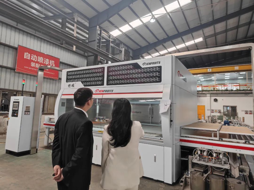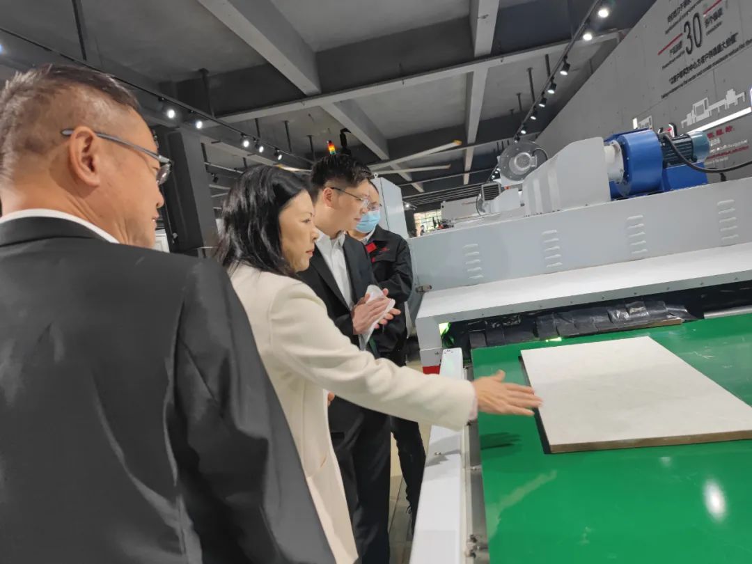 再一同體驗了“涂裝智能生產(chǎn)線”準分子膚感板的生產(chǎn)過程,從進料到出成品,感受到準分子膚感板如嬰兒般皮膚細膩的觸感。通過現(xiàn)場感受涂裝設(shè)備在效率、智能、環(huán)保、節(jié)能方面的先進性,劉書記對博碩在技術(shù)研發(fā)的投入及設(shè)備的智能、環(huán)保、節(jié)能方面的顯著成效給予了充分的肯定和高度的贊揚,對博碩未來及長遠發(fā)展非??春?,同時也做出了相關(guān)的工作指示。