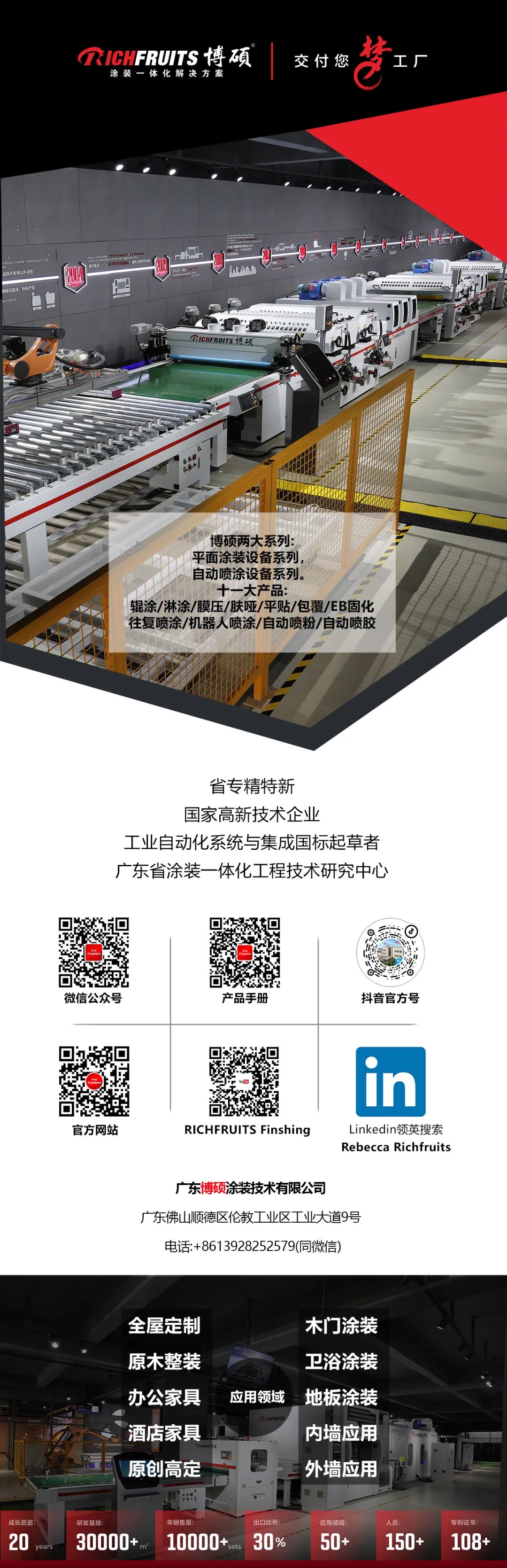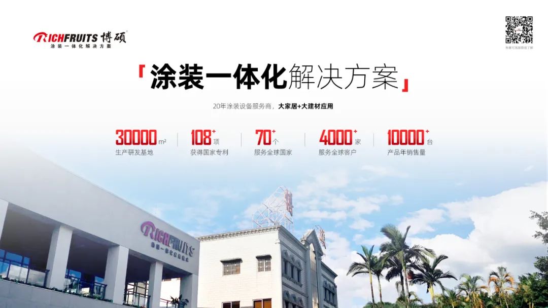 博碩是一家成立于2003年一家設(shè)備制造企業(yè),走過來的20年里,我們始終定位自己是提供涂裝一體化解決方案的服務(wù)商,目前博碩的應(yīng)用領(lǐng)域包括了大家居和大建材兩大行業(yè)。