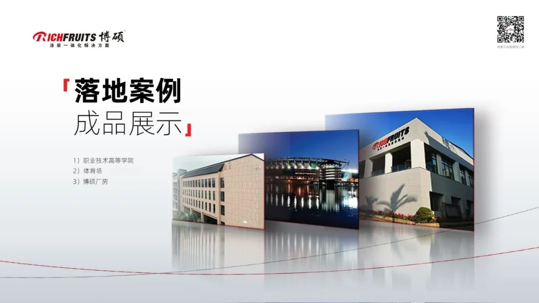 這個是亞士創(chuàng)能做的項(xiàng)目的實(shí)景圖片,他們的產(chǎn)品更多的是應(yīng)用在建筑外墻,參與了非常多的體育場,醫(yī)院、學(xué)校這些大型建筑的外墻工程。比如說博碩的廠房外墻。