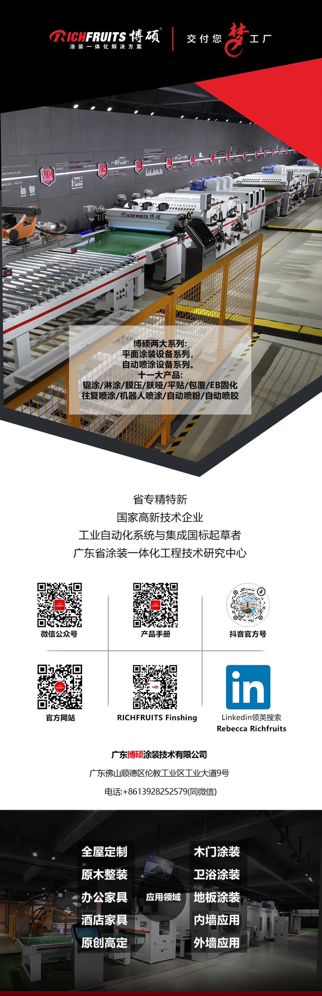 博碩研發(fā)了不需要氮?dú)饧夹g(shù)路線(xiàn),申請(qǐng)了PCT專(zhuān)利,推動(dòng)了準(zhǔn)分子技術(shù)的廣泛普及應(yīng)用)、EB板,意式涂裝木皮板,這些表面效果無(wú)論是板還是膜都是通過(guò)我們的涂裝設(shè)備加工完成的,概括一句博碩是干什么的?就是在大家居和大建材上《專(zhuān)做表面文章》。