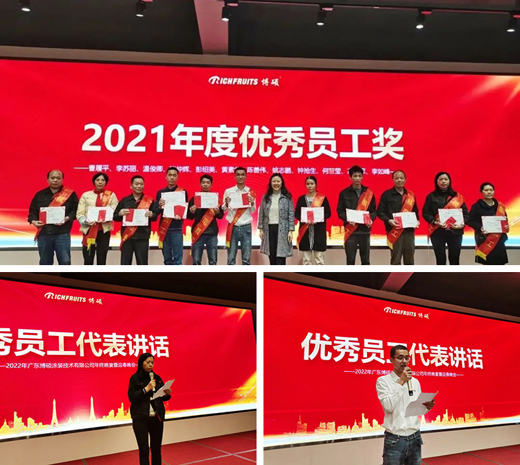 晚會伊始,博碩涂裝董事長謝君女士,向在場的以及因工作原因未能到現(xiàn)場的同事們送上誠摯的新年祝福語,同時(shí)也提出了2022年的關(guān)鍵詞:增長、組織、蛻變,希望博碩涂裝比此刻更好,希望每一個(gè)博碩人比此刻的自己更好,同時(shí)帶給客戶更好的體驗(yàn)。