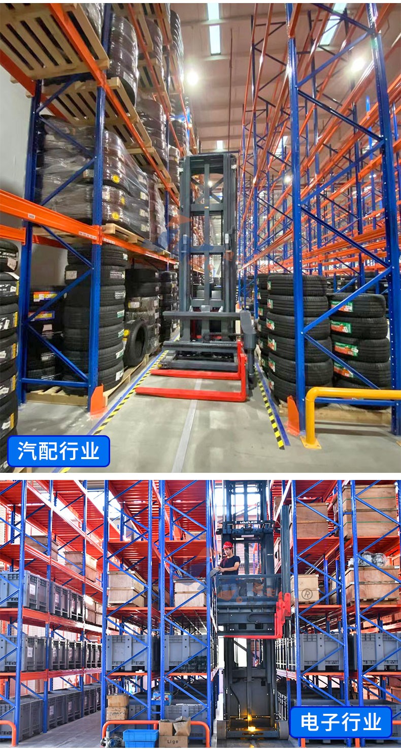 ★窄巷道貨架凈高要求在9m以上,窄巷道貨架可以更多的利用到倉(cāng)庫(kù)上方的空間,流通速度快,大大提高了工作效率。